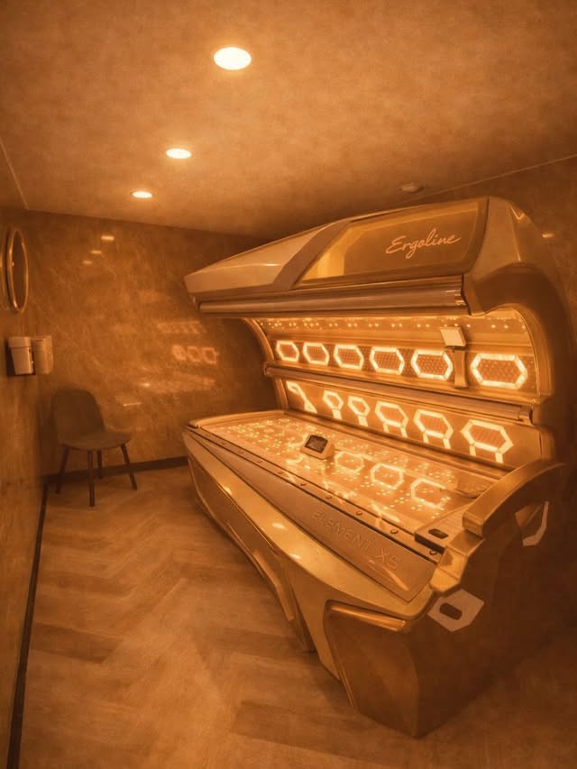 Bij ons maak je gebruik van de nieuwste Ergoline Elements zonnebanken. Deze staan bekend om hun comfort, geavanceerde huidbescherming en optimale bruining. Dankzij innovatieve functies geniet je van een gelijkmatige kleur en een ontspannen ervaring.